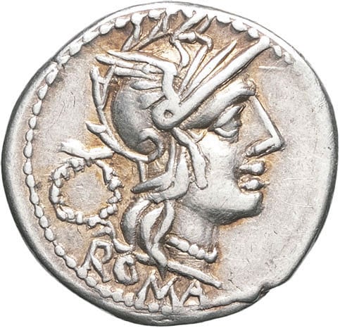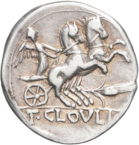 - ROMAN REPUBLIC T. Clovli (ou T. Cloelius). Denier ND (128 av. J.-C.), Rome.