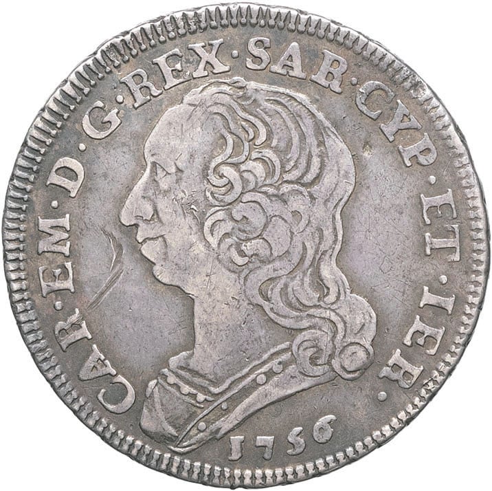 - ITALY Savoie-Sardaigne, Charles-Emmanuel III, 2e période (1755-1773). Quart d’écu neuf (quarto di scudo nuovo) 1756, Turin.