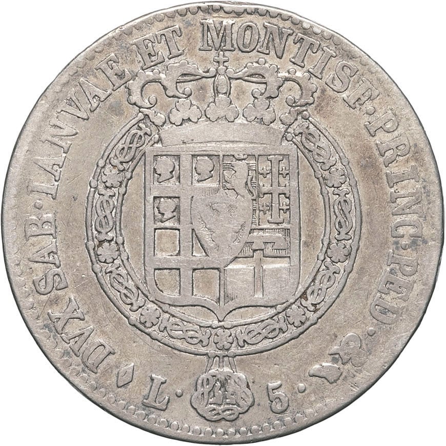 Rv. DVX SAB. GENVAE ET MONTISF. PRINC. PED. &. Écu couronné et entouré du collier de l’ordre de l’Annonciade ; au-dessous (différent) L. - 5. et (atelier).