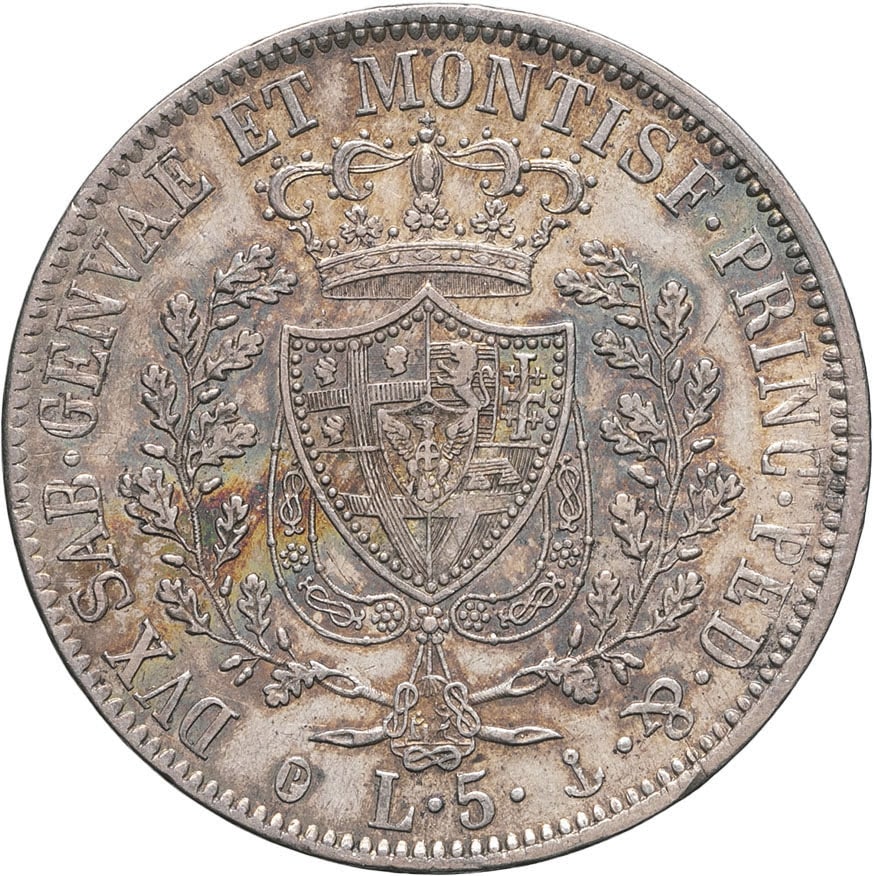 - ITALY Savoie-Sardaigne, Charles-Félix (1821-1831). 5 lire 1830, ancre, Gênes.