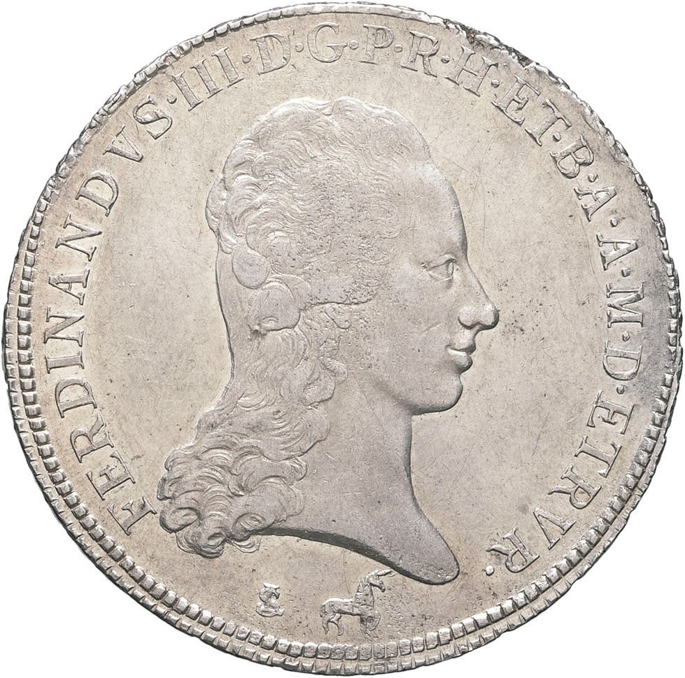 Av. FERDINANDVS. III. D. G. P. R. H. ET. B. A. A. M. D. ETR. Buste du Grand-duc à droite, au-dessous (différents).