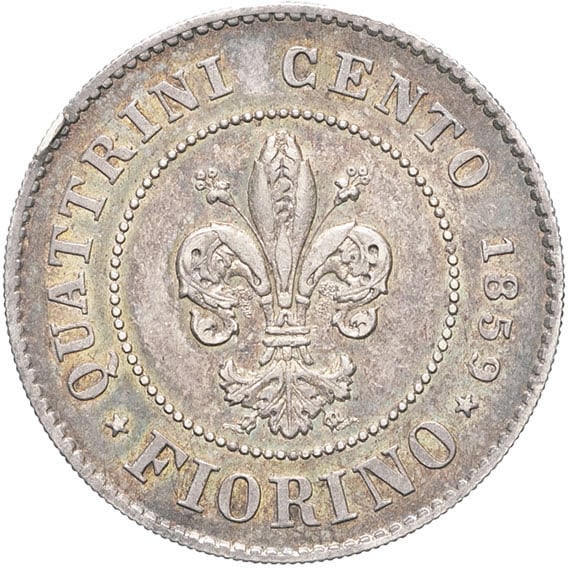 - ITALY Toscane, Gouvernement provisoire (1859-1860). Fiorino ou 100 quattrini 1859, Florence.