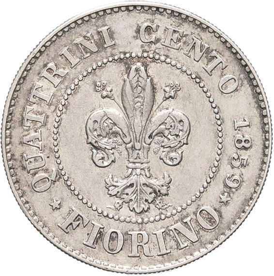 - ITALY Toscane, Gouvernement provisoire (1859-1860). Fiorino ou 100 quattrini 1859, Florence.