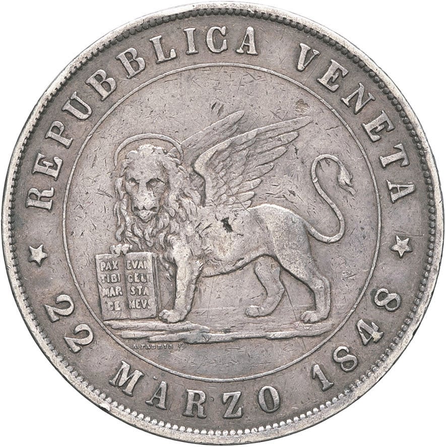- ITALY Venise, Révolution (1848-1849). 5 lire 1848, V, Venise.