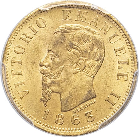 - ITALY Victor-Emmanuel II (1861-1878). 10 lire 1863, T, Turin.