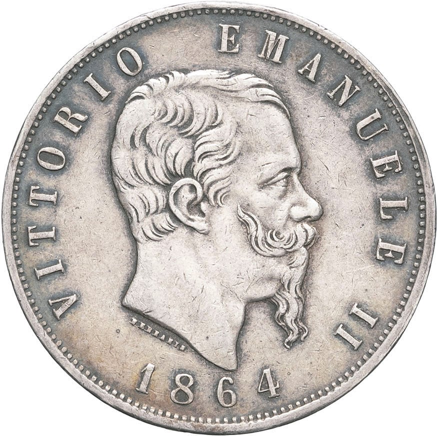 - ITALY Victor-Emmanuel II (1861-1878). 5 lire 1864, N, Naples.