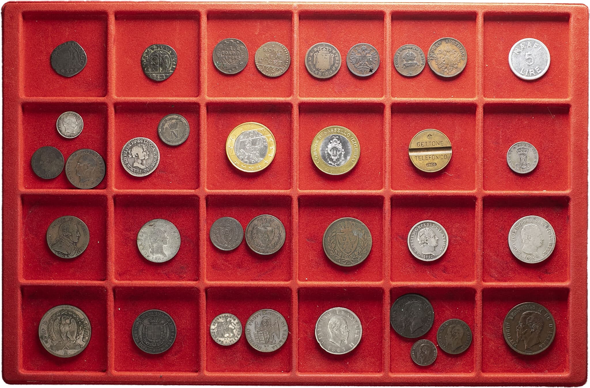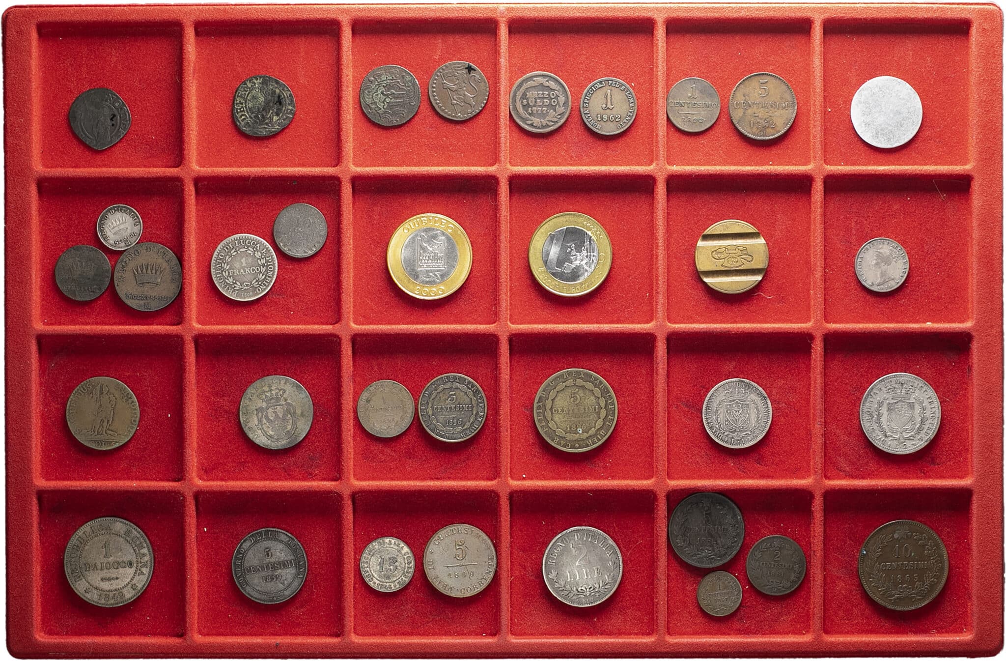 Dont des monnaies des États italiens : Venise, Lucques et Piombino, Lombardie-Vénétie, Savoie-Sardaigne etc. Quelques jetons. Qualité diverses.