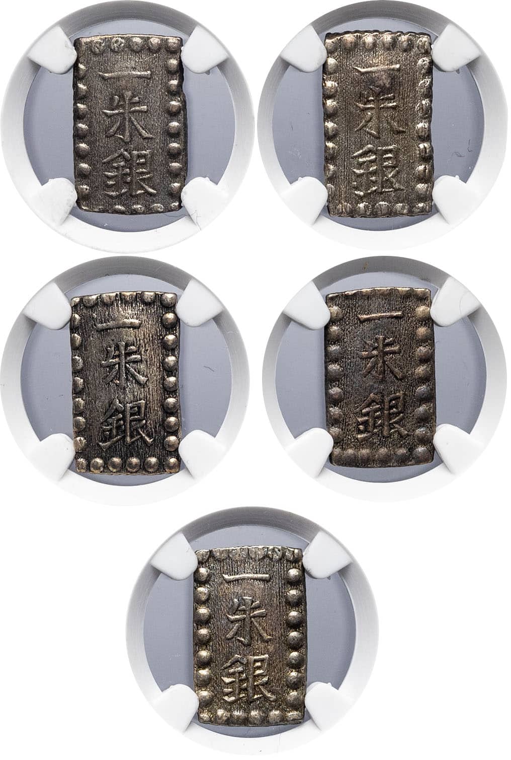 - JAPAN Komei (1846-1867). Lot de 5 x 1 shu ND (1859-1868).