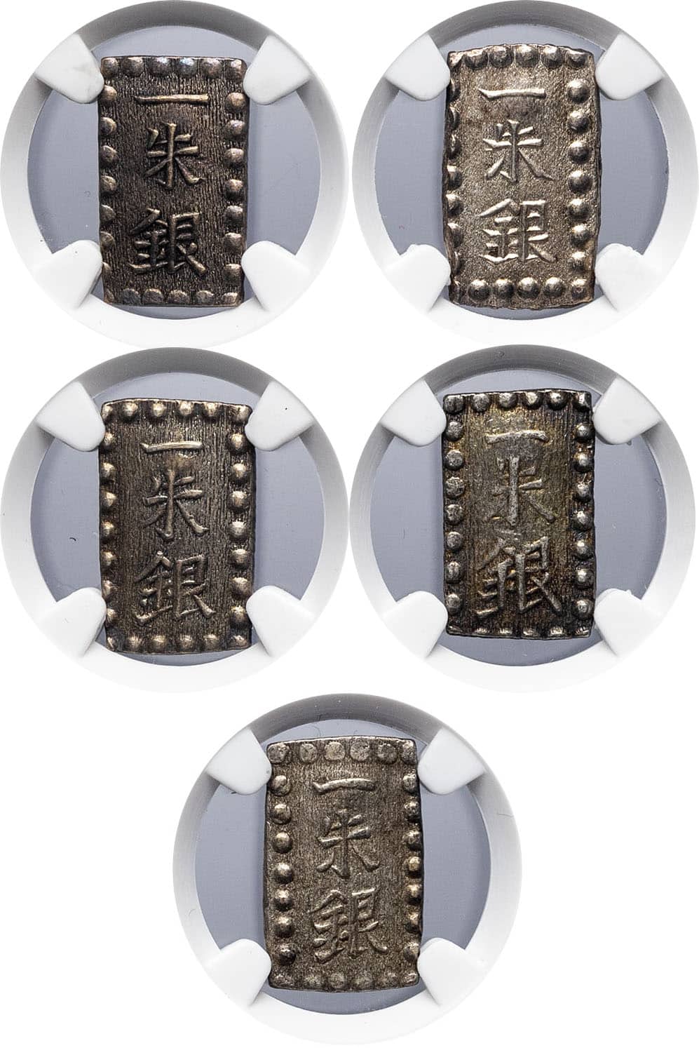 - JAPAN Komei (1846-1867). Lot de 5 x 1 shu ND (1859-1868).