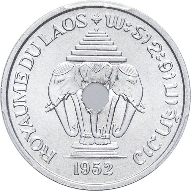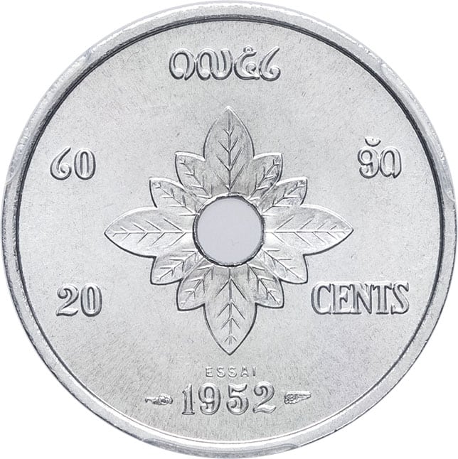 - Royaume du Laos, Sisavang Vong (1946-1959). Essai de 20 cents 1952, Paris.