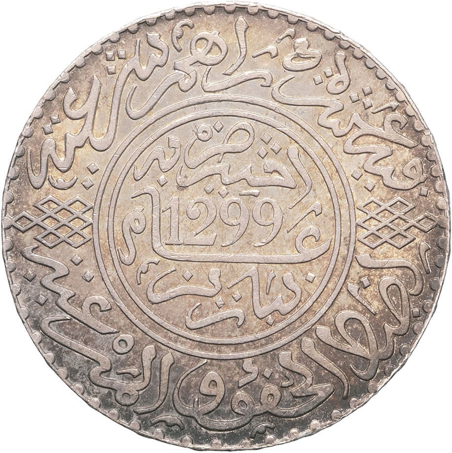 - MOROCCO Hassan Ier (1873-1894). 10 dirhams (rial) AH 1299 (1882), Paris.