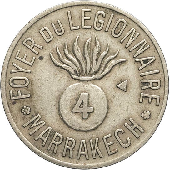 - MOROCCO IIIe République (1870-1940). Monnaie de nécessité, foyer du légionnaire à Marrakech, 1 [franc] ND.