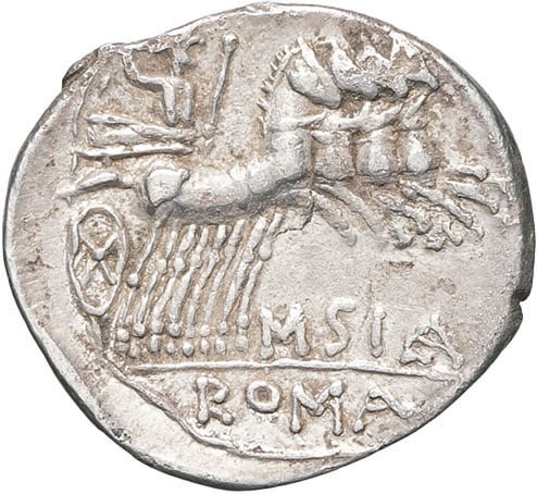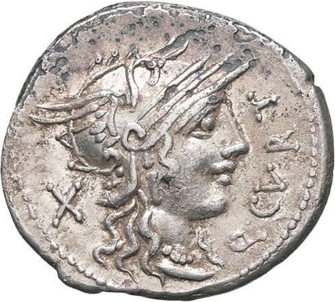 - ROMAN REPUBLIC Q. Curtius, M. Silanus et Cn. Domitius Ahenobarbus. Denier ND (116-115 av. J.-.C), Rome.