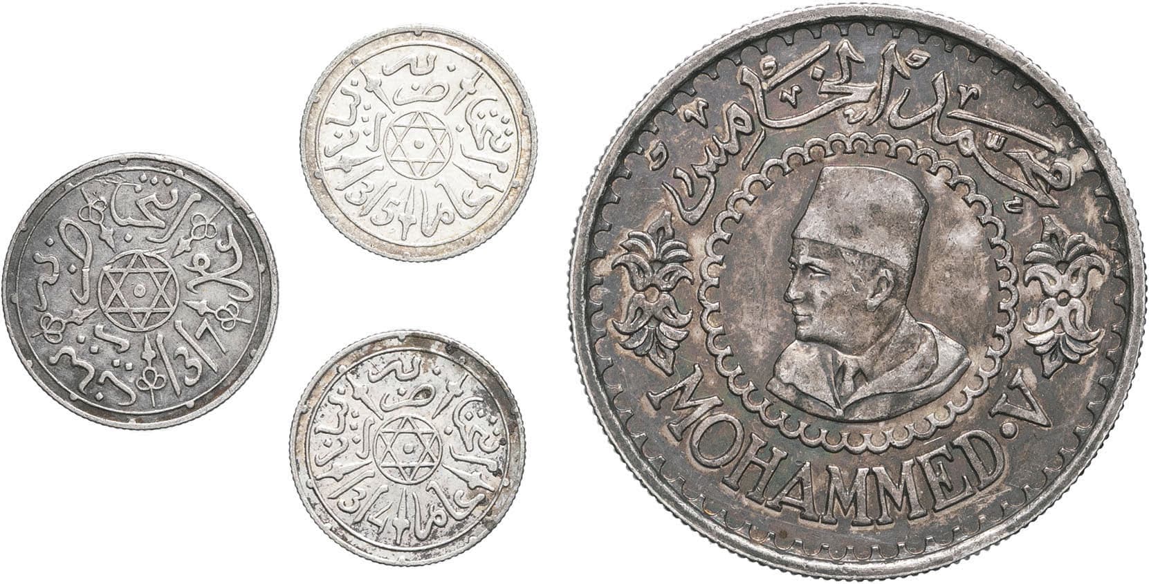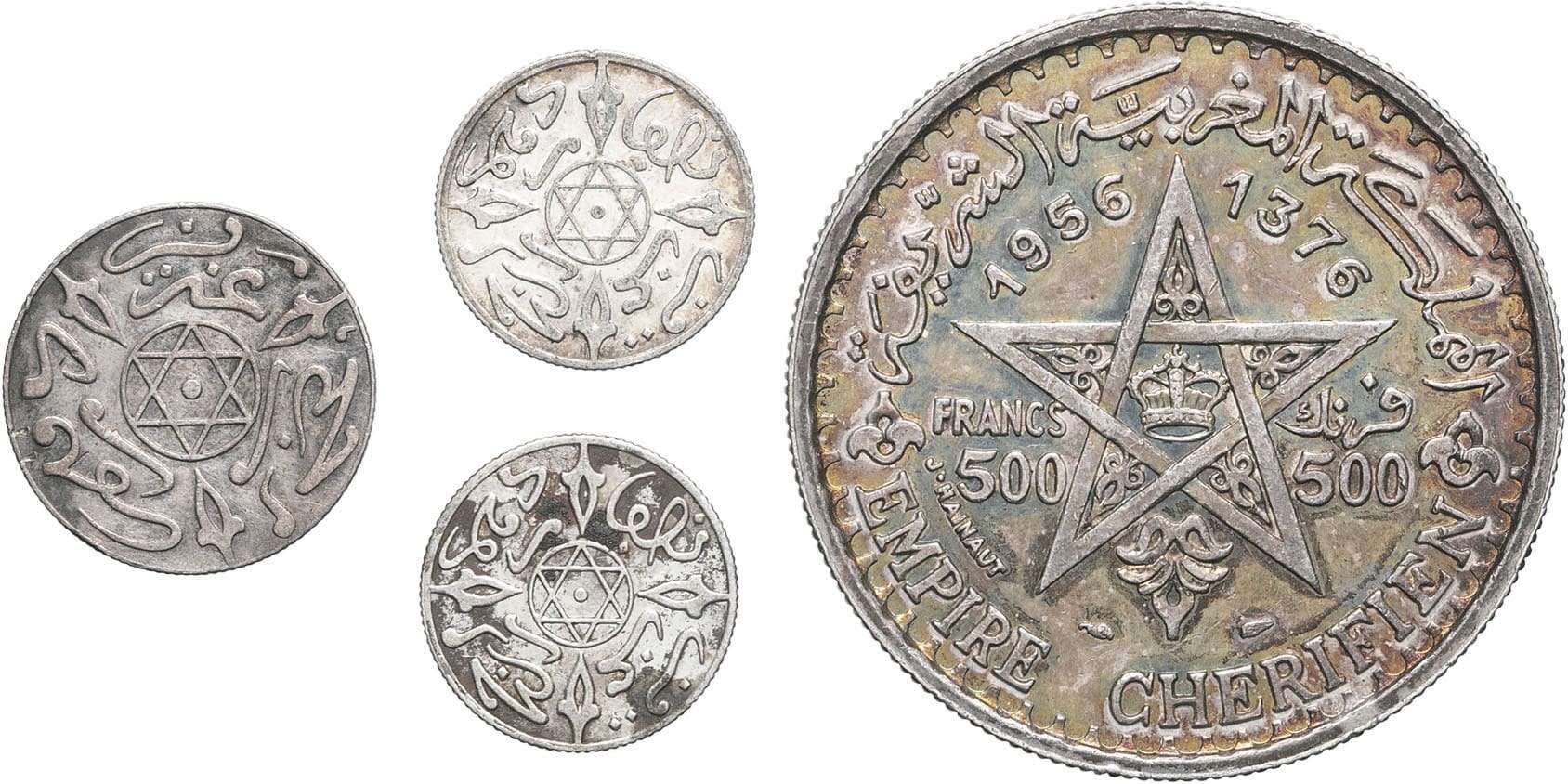 Abdül Aziz I, 1/2 dirham 1314 (Lec.104), 1315 (Lec. 105), 1 dirham 1317 (Lec.126) - Mohammed V, 500 francs 1956 (Lec.293)