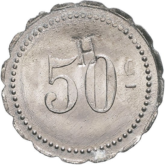 - MAURITANIA IIIe République (1870-1940). Monnaie de nécessité, Société industrielle de la Grande Pêche, 50 [centimes] 1920.