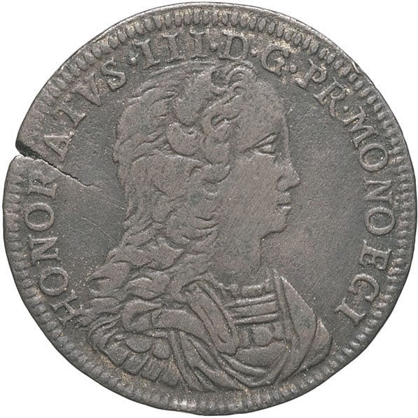 Av. HONORATVS. III. D. G. PR. MONOECI. Buste drapé et cuirassé à droite.