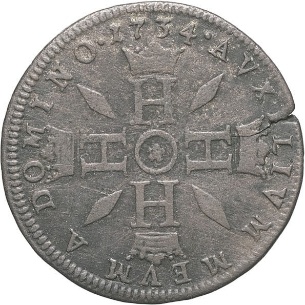 Rv. AVXILIVM MEVM A DOMINO. (date). Quatre H couronnés disposés en croix, accostés de quatre fusées ; au centre, une rose dans un cercle.