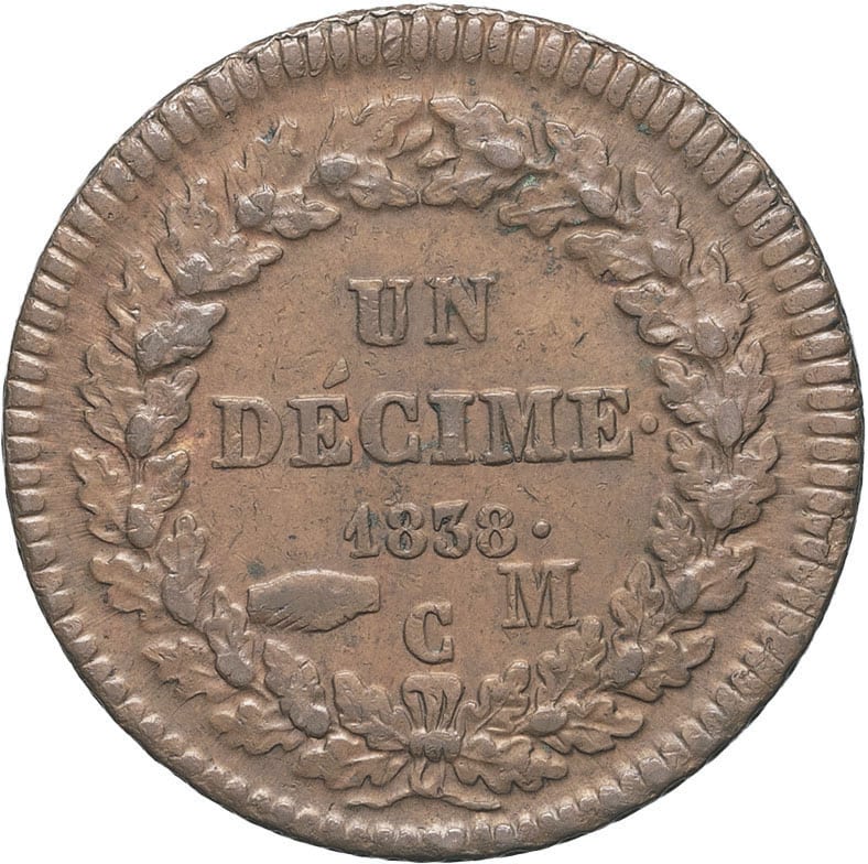 - Honoré V (1819-1841). Un décime, grosse tête 1838, Monaco.