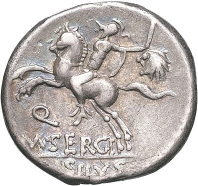 - ROMAN REPUBLIC M. Sergius Silus. Denier ND (116-115 av. J.-C.), Rome.