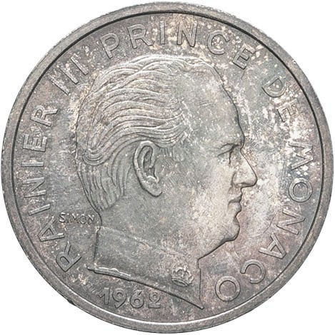 - Rainier III (1949-2005). Essai de 10 centimes 1962, Paris.