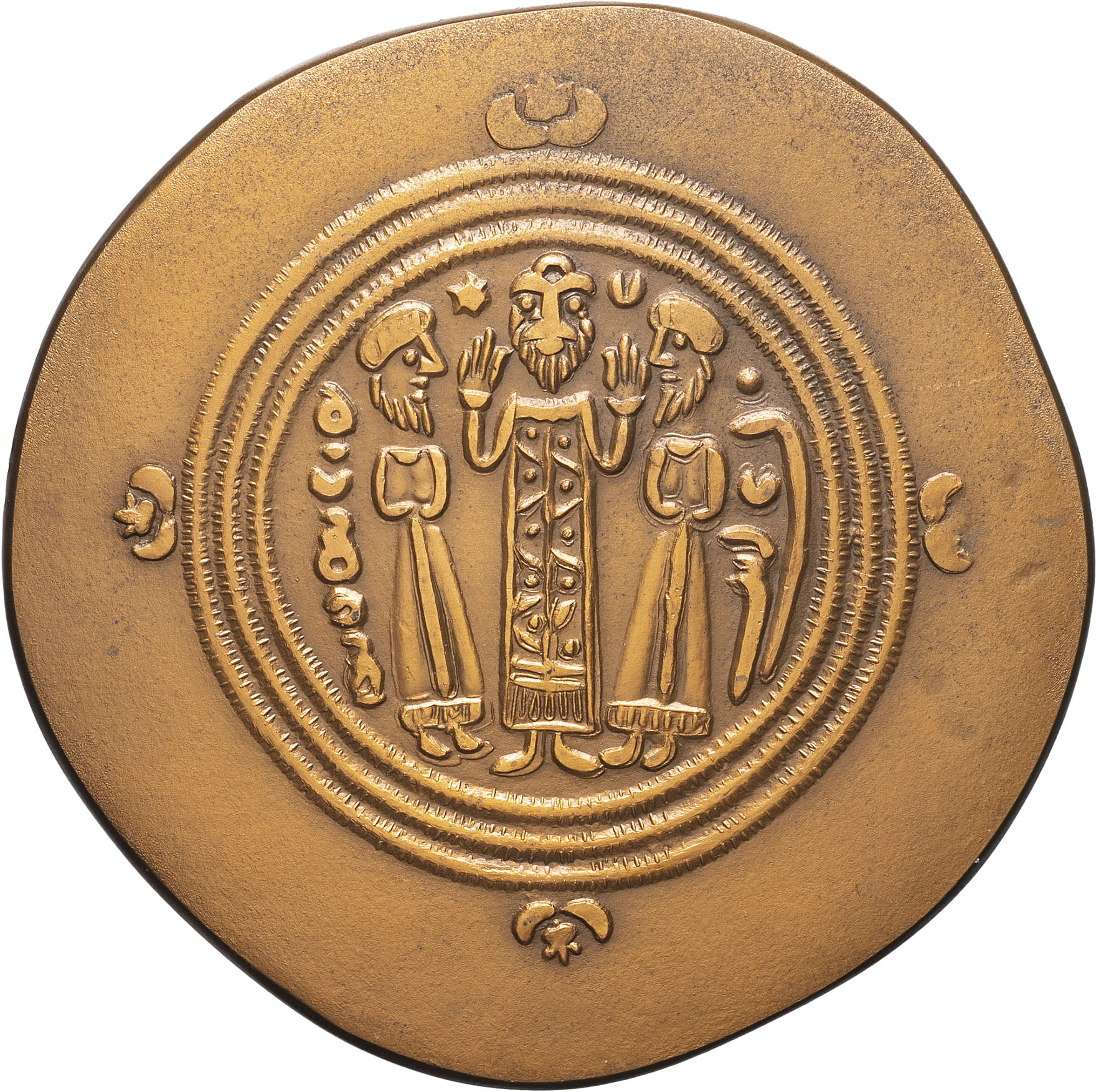 - MISCELLANEOUS Omeyyades, époque d’Abd Al-Malik (685-705). Médaille, agrandissement d’une drachme au nom du gouverneur Bishr ibn Marwan, frappé à Basra 1979 [d’après un original de AH 75 (694)], Paris.