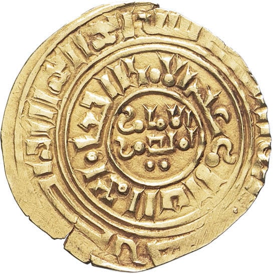 - MISCELLANEOUS Royaume chrétien de Jérusalem. Dinar d’Or ou besant “sarracenat”, imitation de dinar fatimide du calife Mansur al-Amir Bi-Ahkamillah ND (2e moitié du XIIe s.), Jérusalem ?