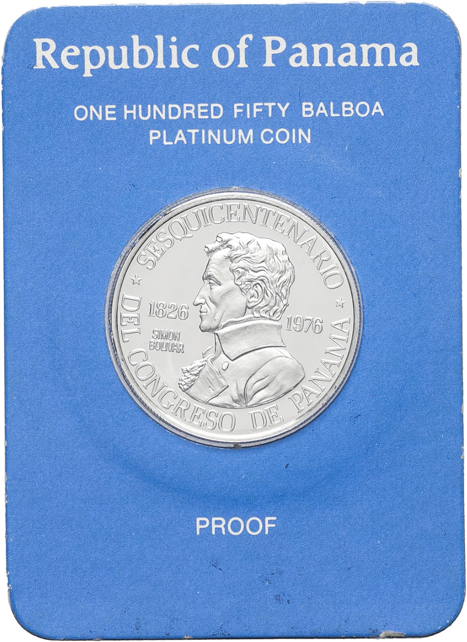 - République (1903 - à nos jours). 150 balboas, 150e anniversaire du Congrès du Panama, frappe sur Flan bruni (PROOF) 1976, FM, Franklin mint.