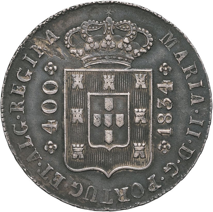 - Marie II (1834-1853). 400 réis 1834, Lisbonne.