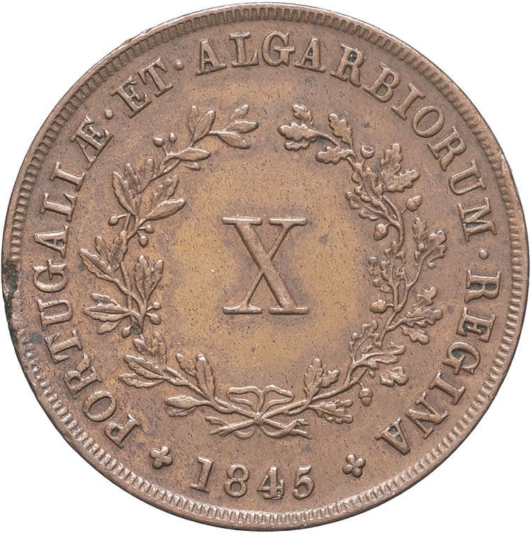 - Marie II (1834-1853). X réis 1845, Lisbonne.