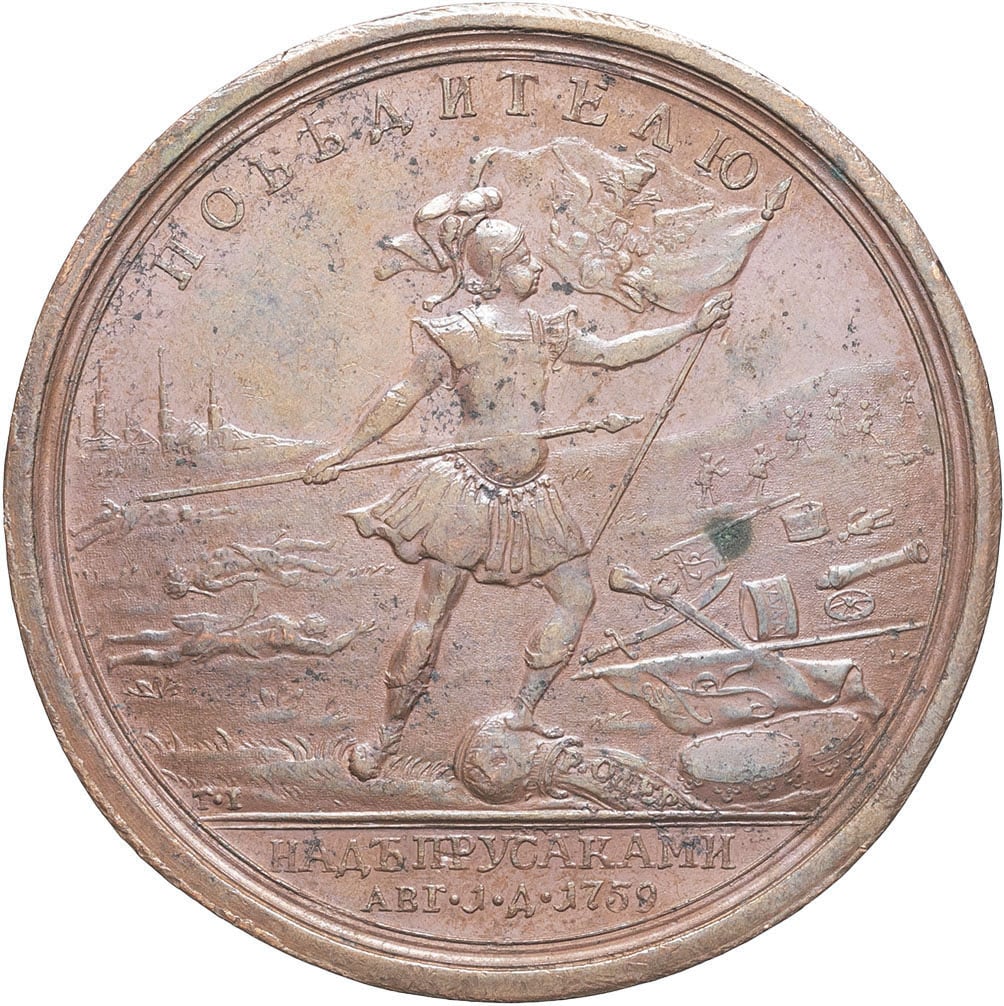 - RUSSIA Élisabeth (1741-1761). Médaille, victoire sur l’armée prussienne à Kunersdorf, par T. Ivanov 1759.