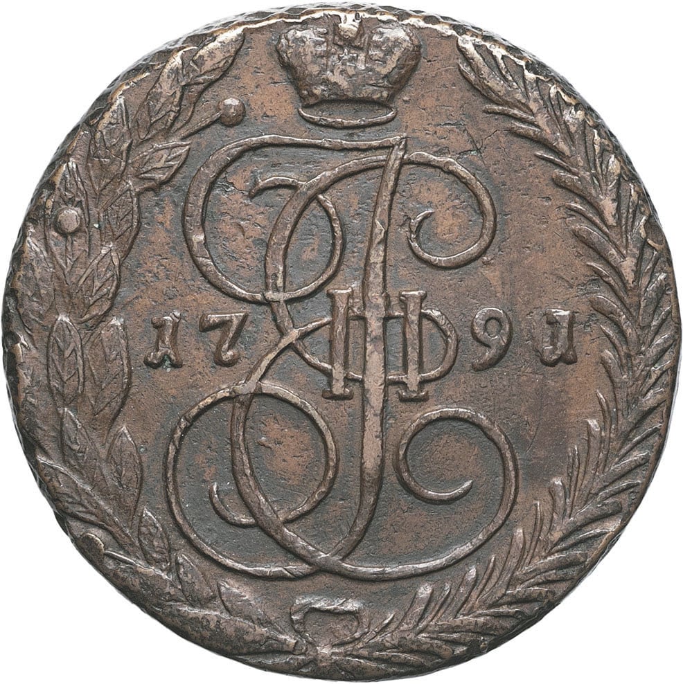 - RUSSIA Catherine II (1762-1796). 5 kopecks 1791/0, EM, Ekaterinbourg.