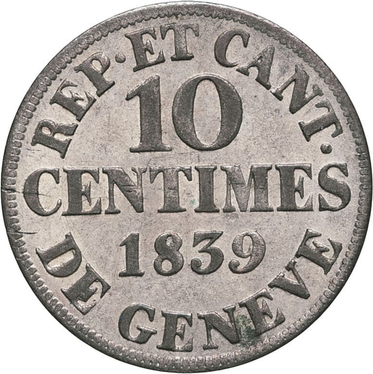 - SWITZERLAND Genève (canton de). 10 centimes 1839, Genève.