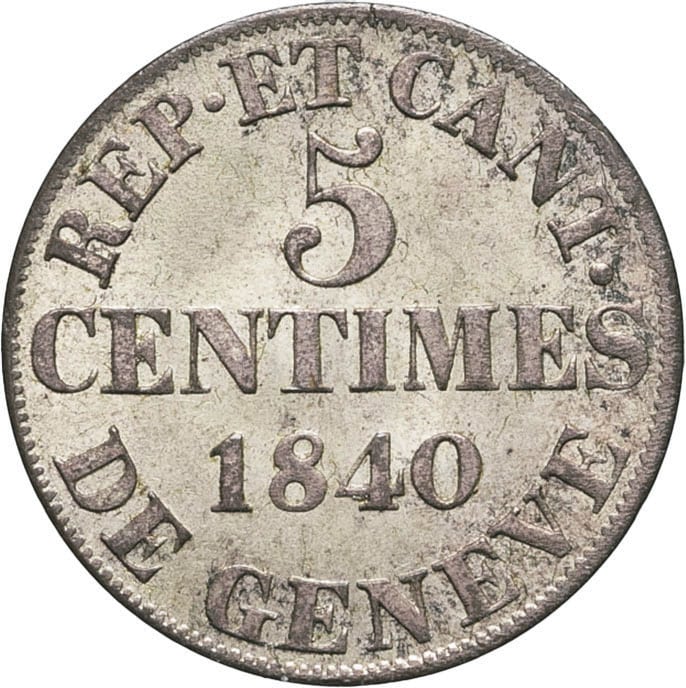 - SWITZERLAND Genève (canton de). 5 centimes 1840, Genève.