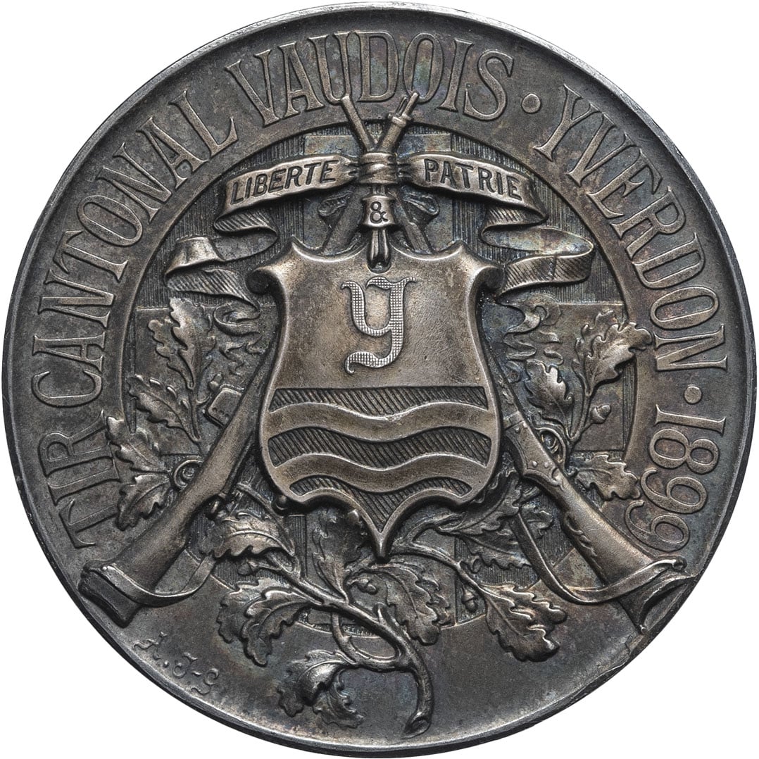 - SWITZERLAND Vaud (canton de). Médaille, tir cantonal vaudois à Yverdon, par Jacot-Guillarmod 1899.