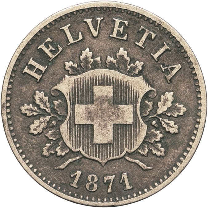 - SWITZERLAND Confédération Helvétique (1848 à nos jours). 10 centimes (rappen) 1871, B, Berne.