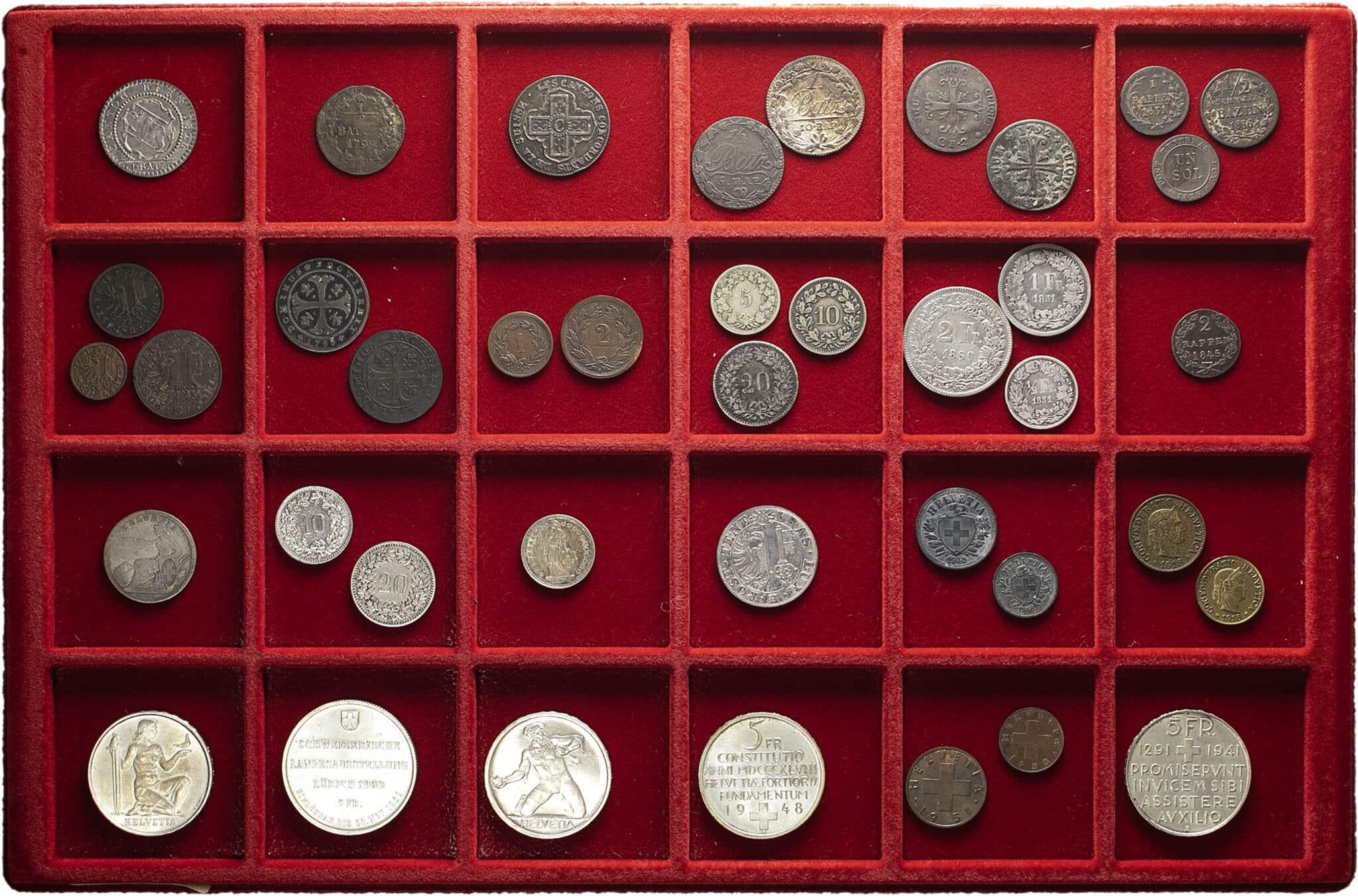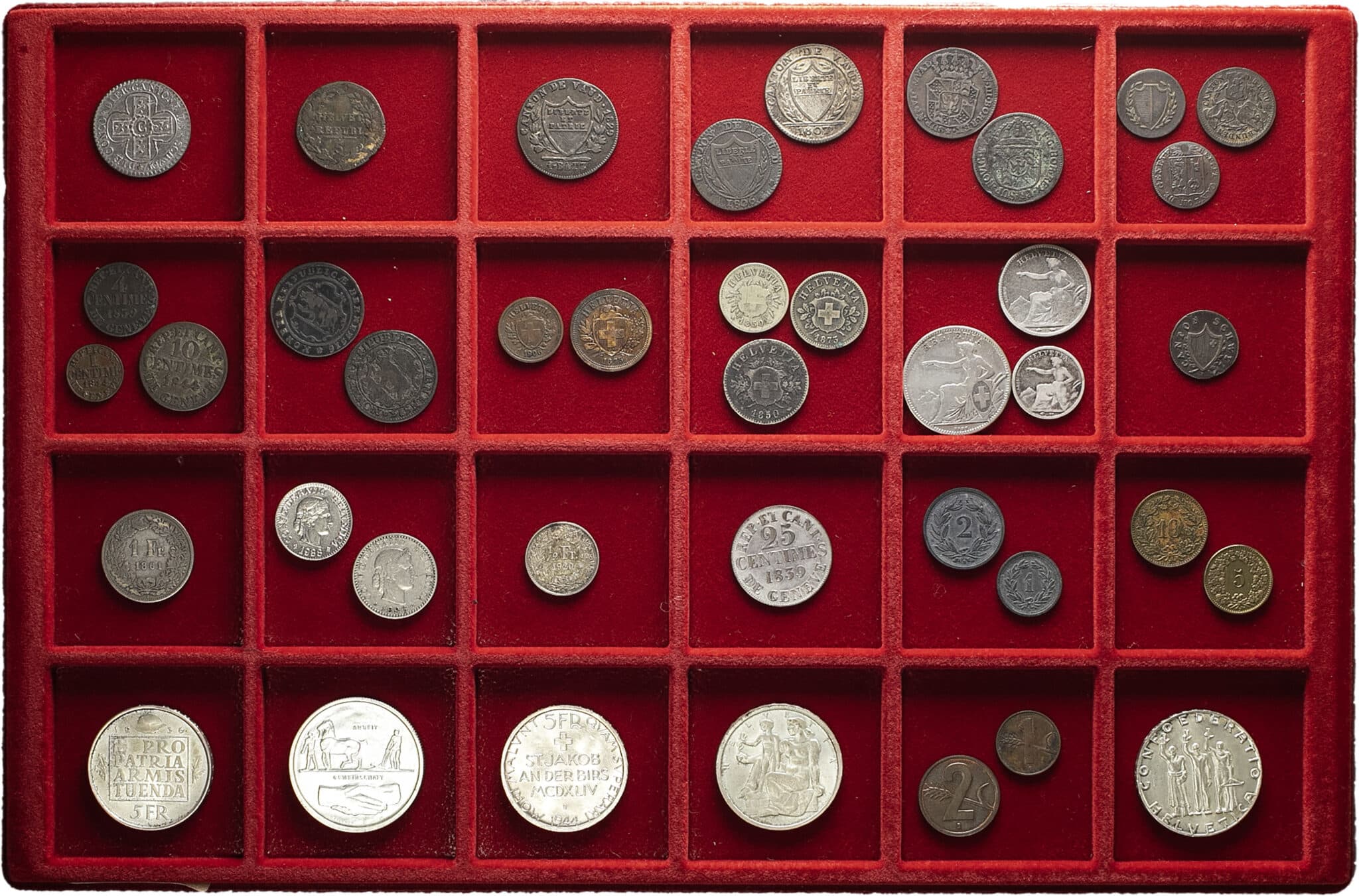 Dont des monnaies de Berne, Vaud, République Helvétique, Neuchâtel, Grisons, Genève, Confédération. Qualités diverses.