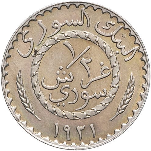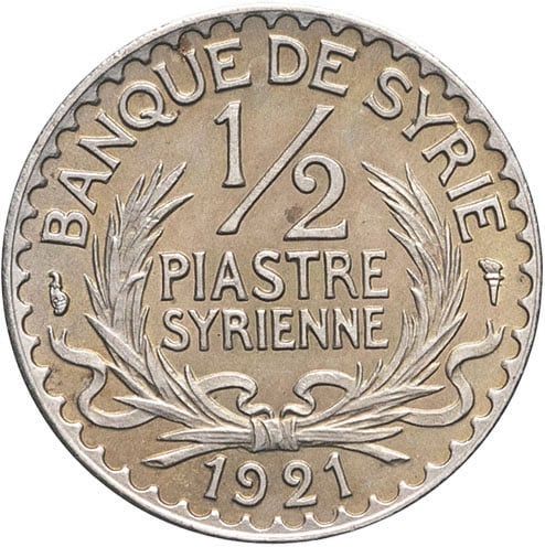 - SYRIA Mandat français (1920-1946). 1/2 piastre syrienne 1921, Paris.