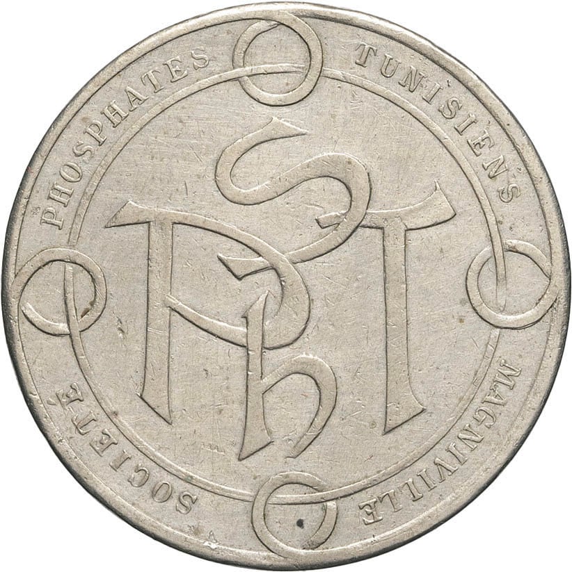 - TUNISIA IIIe République (1870-1940). Monnaie de nécessité, société des phosphates tunisiens à Magniville (Kalaa-Djerda), 5 francs ND.