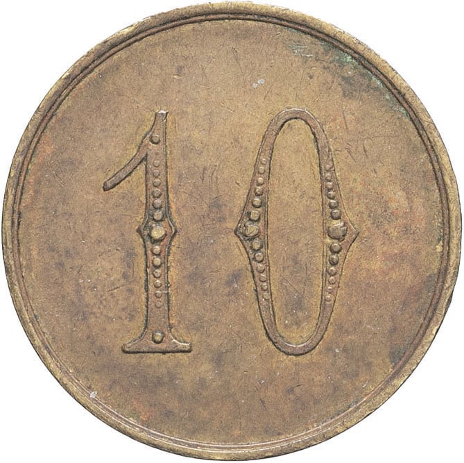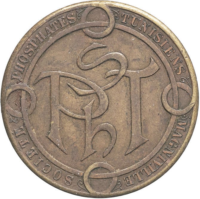 - TUNISIA IIIe République (1870-1940). Monnaie de nécessité, société des phosphates tunisiens à Magniville (Kalaa-Djerda), 10 [centimes] ND.