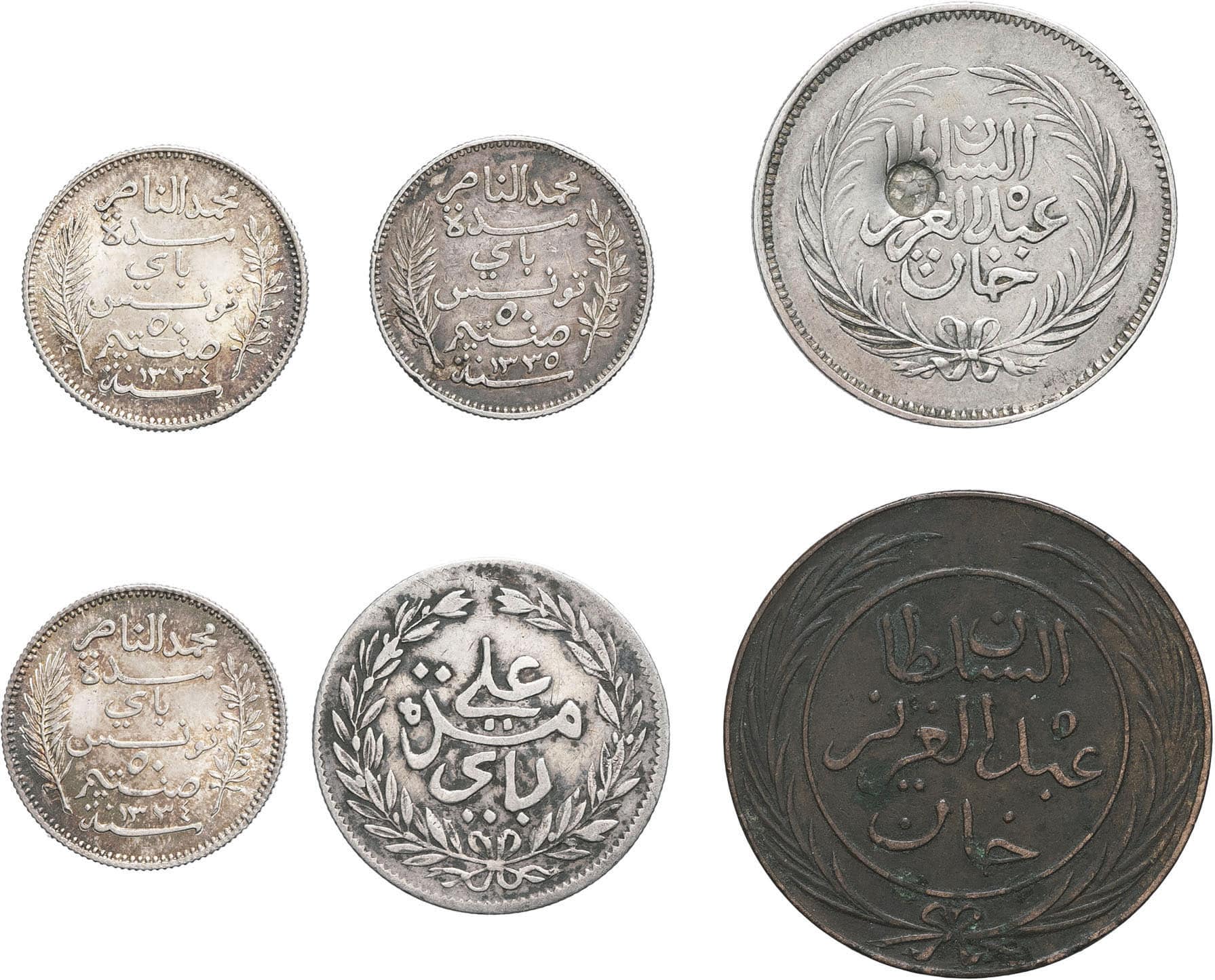 - TUNISIA Lot de 6 monnaies.