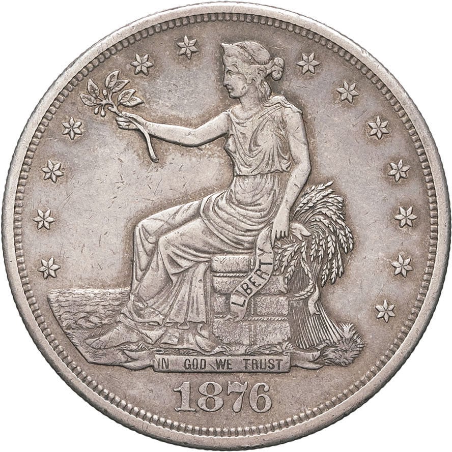 - UNITED STATES OF AMERICA République fédérale des États-Unis d’Amérique (1776-à nos jours). Dollar de commerce (trade dollar), à la Liberté assise 1876, S, San Francisco.