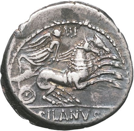 - ROMAN REPUBLIC D. Junius Silanus. Denier ND (91 av. J.-C.), Rome.