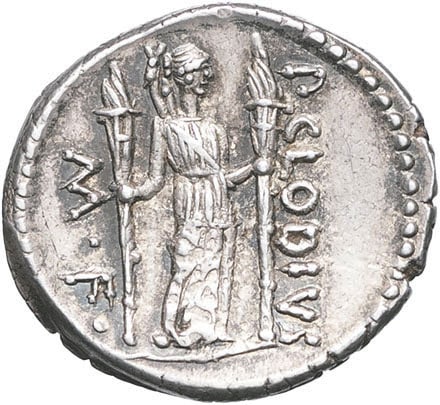 - ROMAN REPUBLIC P. Clodius. Denier ND (42 av. J.-C.), Rome.