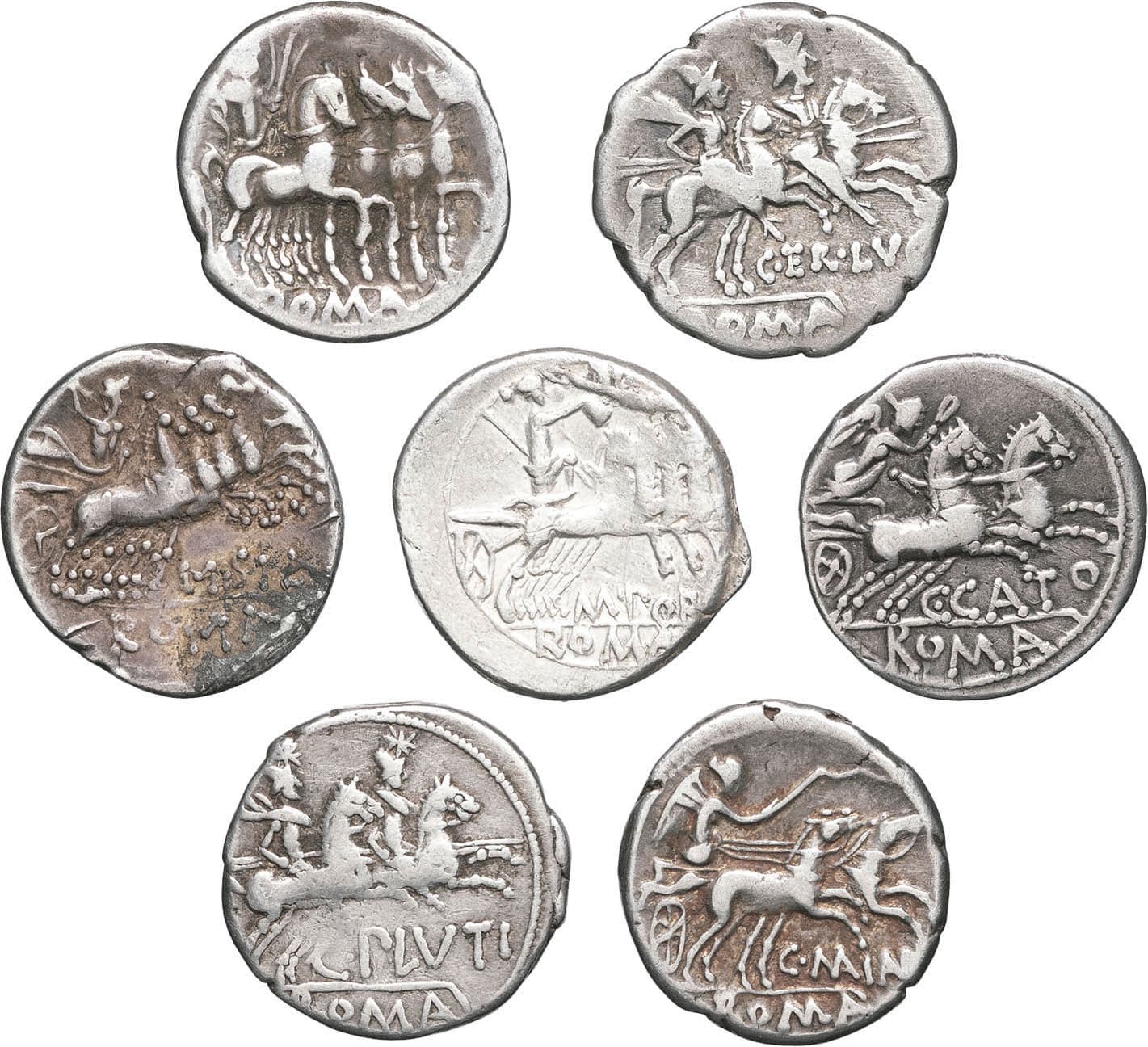 RRC.203/1a, 270/1, 217/1, 256/1, 274/1, 278/1, 285/2 ; Argent