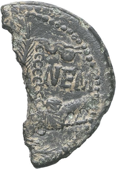 - ROMAN Auguste (27 av. J.-C. - 14 ap. J.-C.). Demi-dupondius ou As de Nîmes ND (16-10 av. J.-C.), Nîmes.
