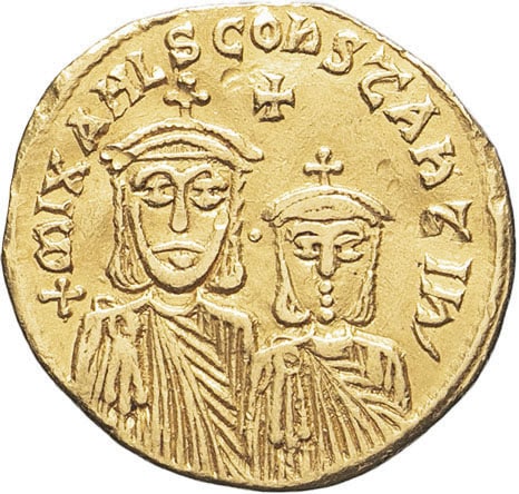 - BYZANTINE Théophile, Constantin et Michel III (829-842). Solidus ND (830-840), Constantinople, 9e officine.