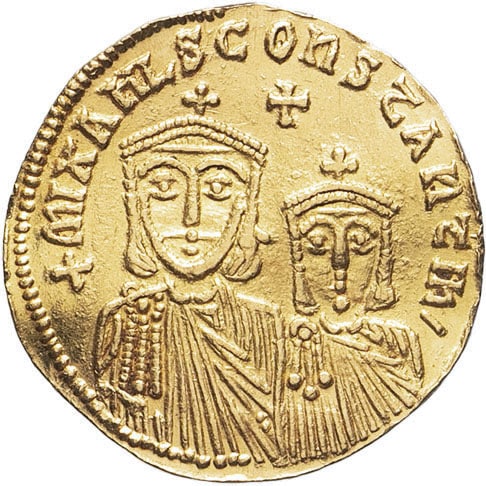 - BYZANTINE Théophile, Constantin et Michel III (829-842). Solidus ND (830-840), Constantinople, 9e officine.