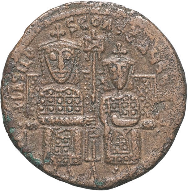- BYZANTINE Basile Ier et Constantin (868-879). Follis ND, Constantinople.