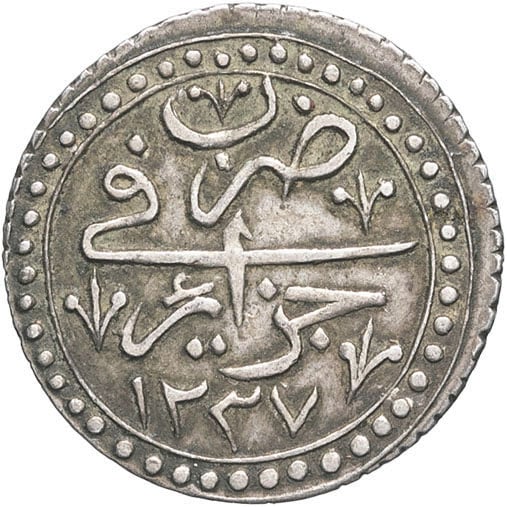 - ALGERIA Mahmoud II (1808-1839). 1/4 boudjou AH 1237 (1822), Alger.