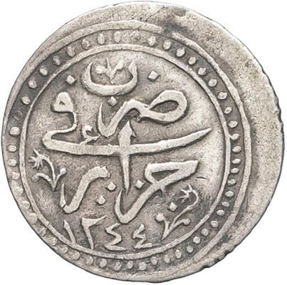 - ALGERIA Mahmoud II (1808-1839). 1/8 boudjou AH 1244 (1829), Alger.